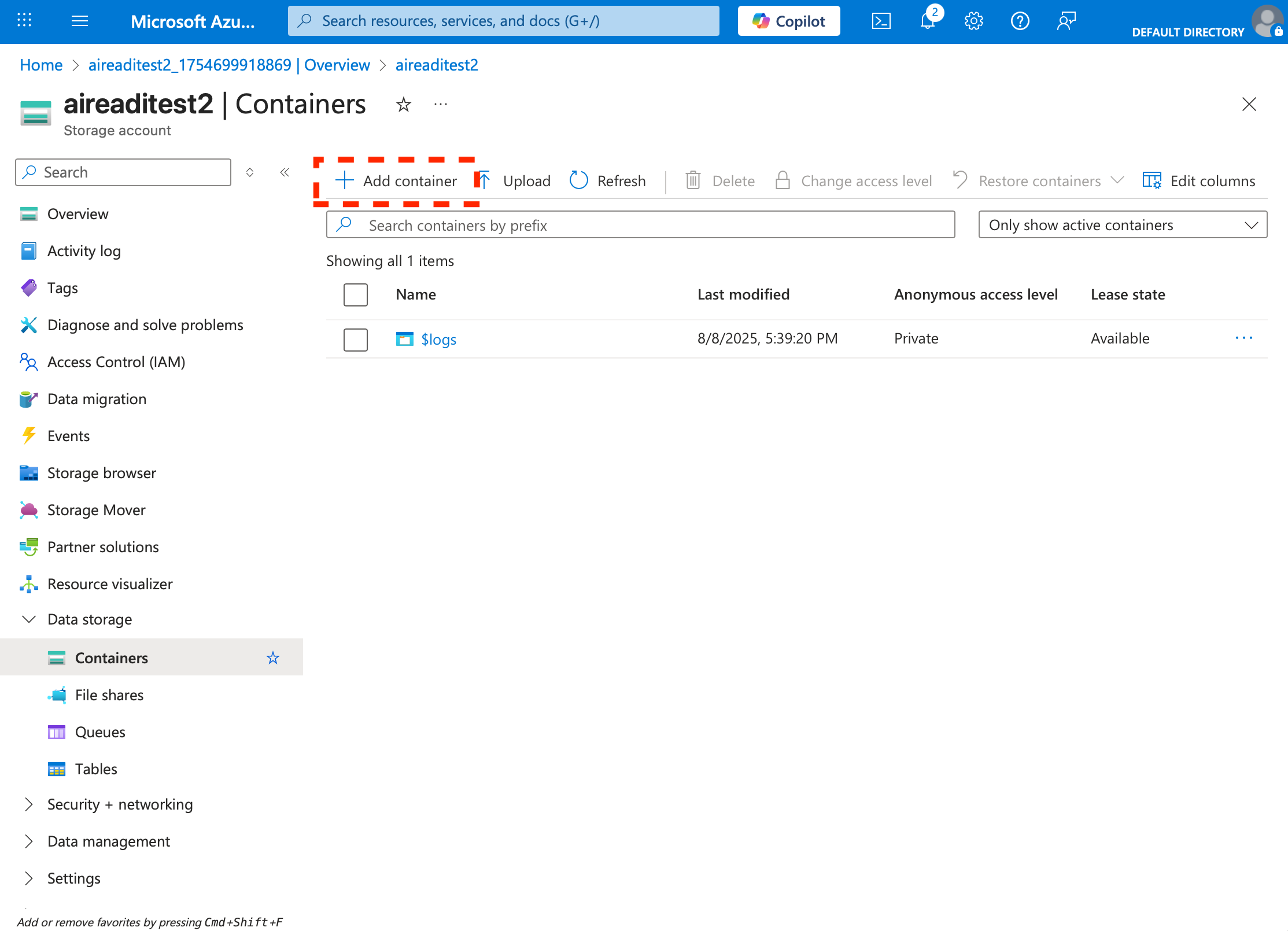 At this point we now need a place to put the files. As the Microsoft documentation states "Azure Blob Storage allows you to store large amounts of unstructured object data." This will be where the AI-READI files will be ultimately delivered. If you already have a container you can skip to the next step to create a SAS token.