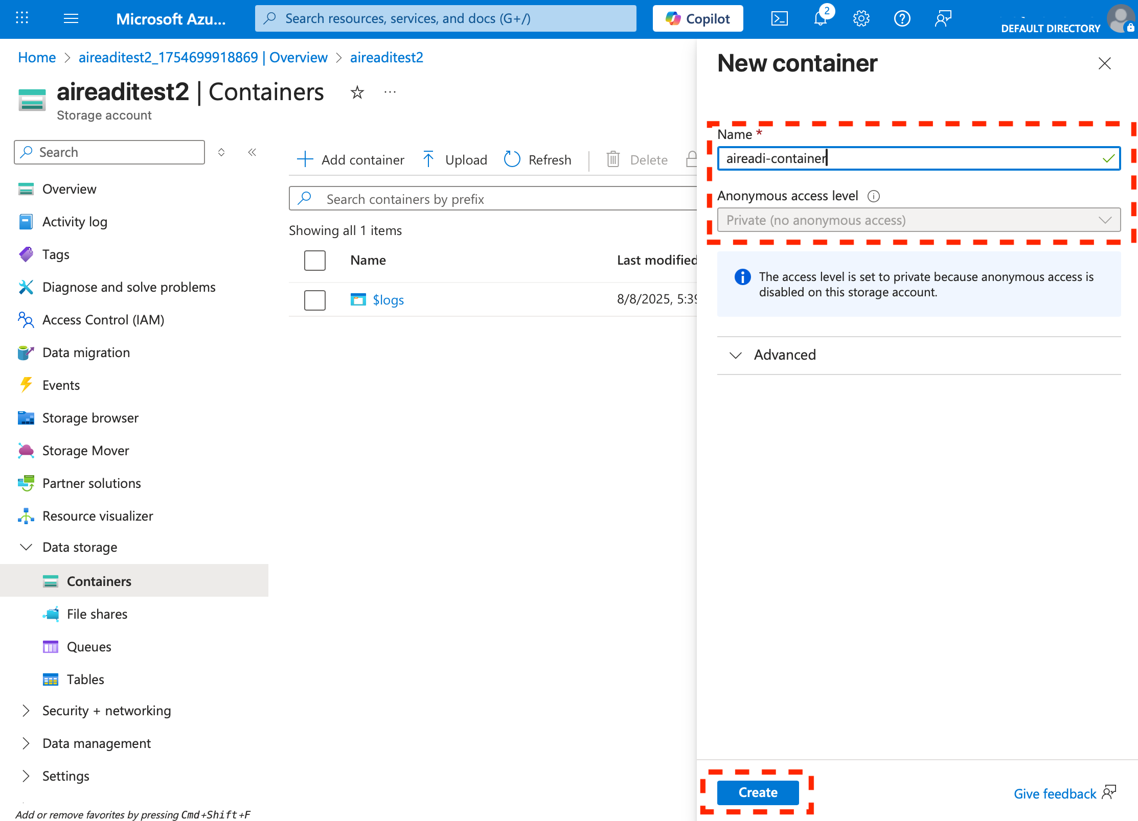 Note: Save your Container Name along with the Storage Account name for use in the dataset request.