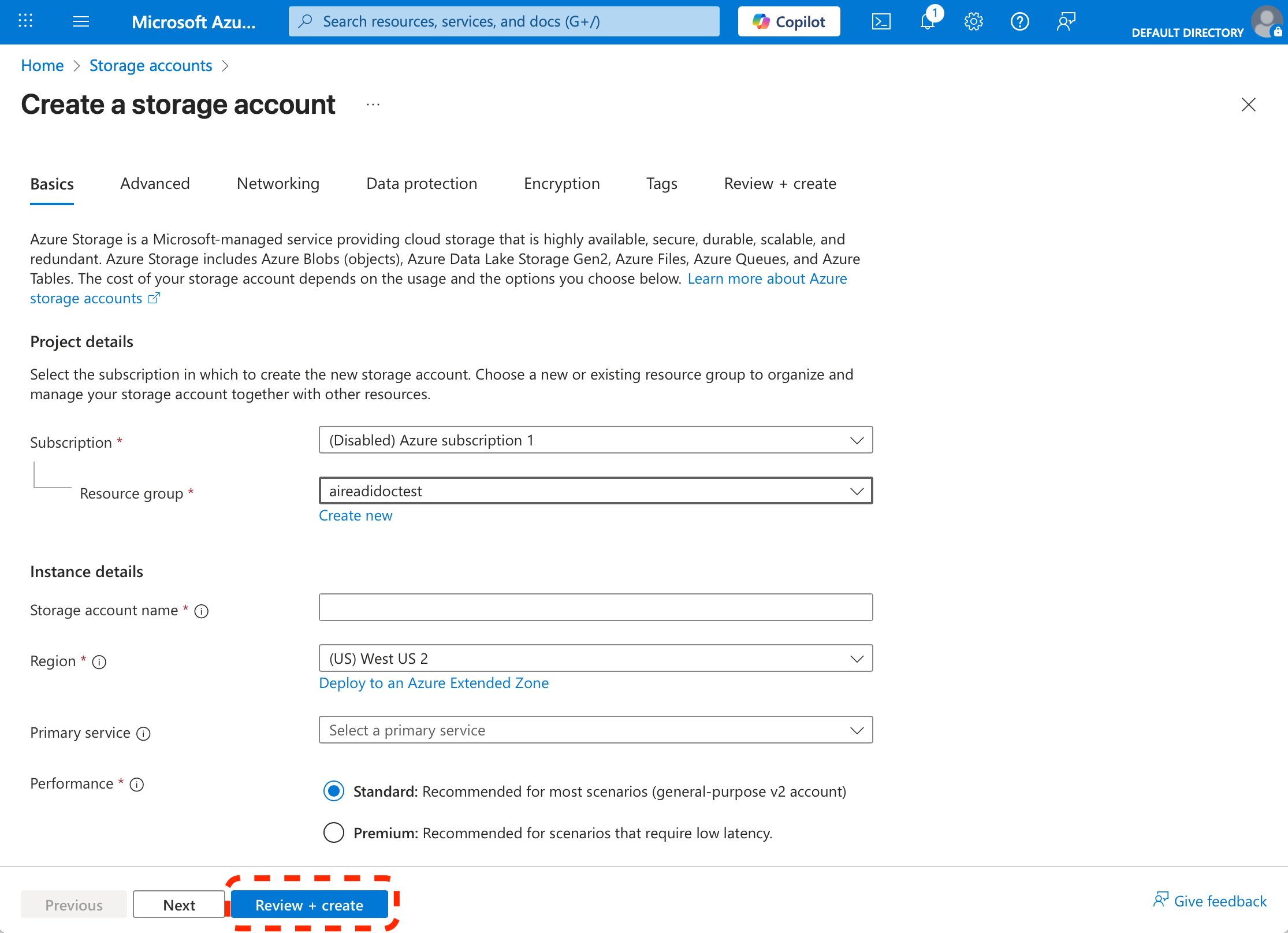 Next, create an Azure Storage Account that will house the storage container. Below is a summarized version of the full documentation. If you already have an Azure Storage Account you can skip to creating the container.