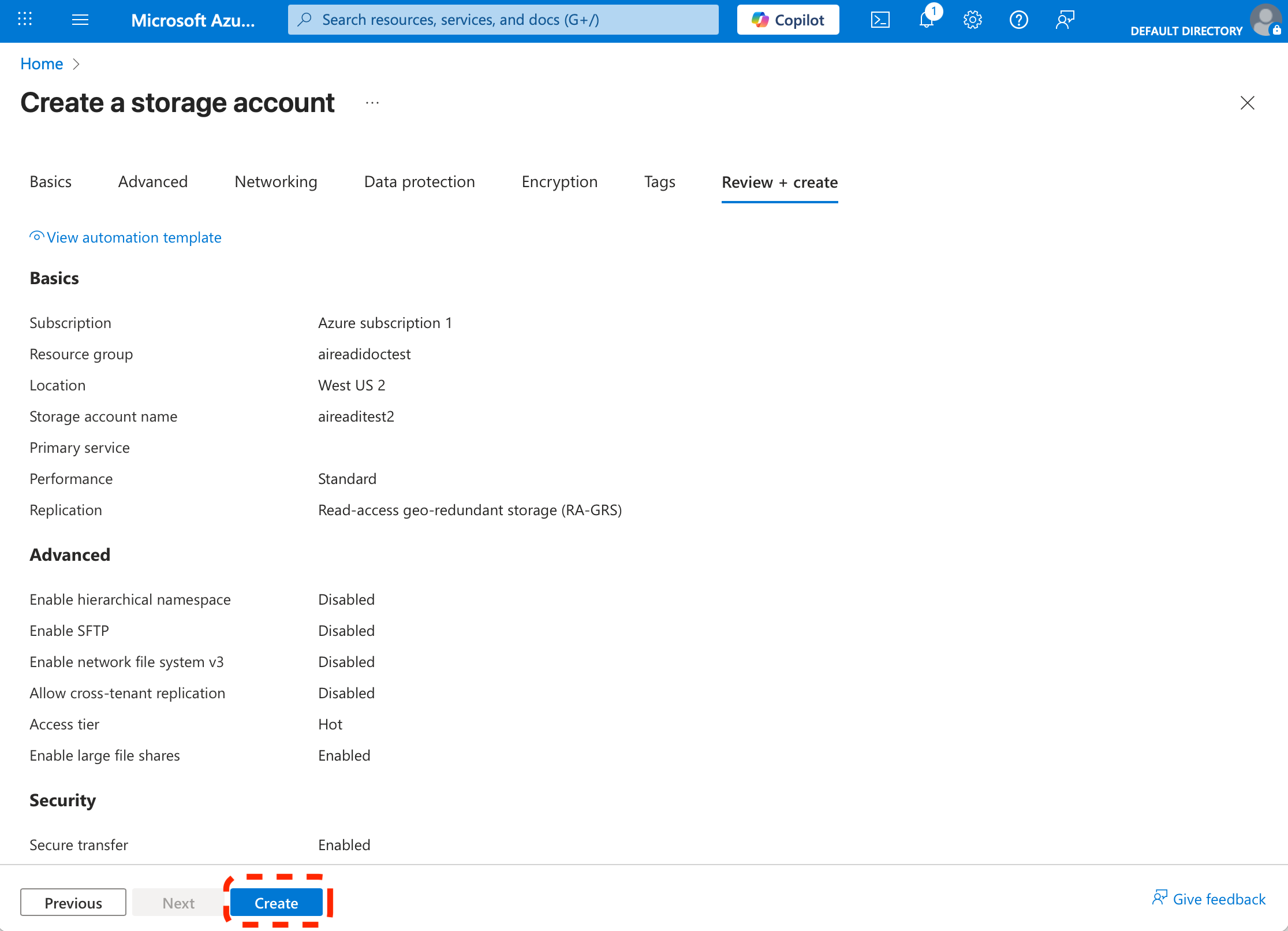 Note: Take note of your Storage Account Name. You’ll need this when requesting the dataset.
