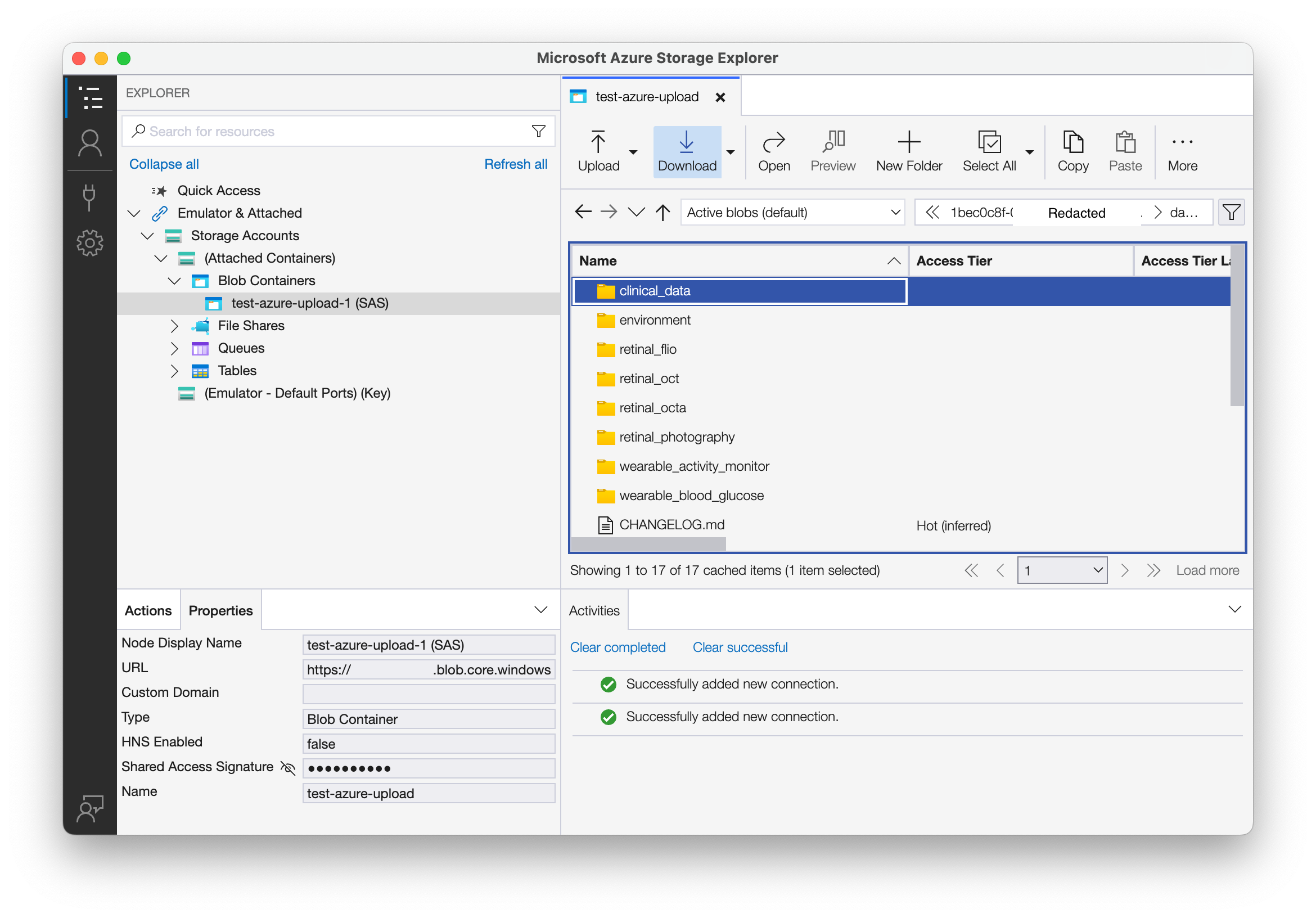 Once you have selected and set up your preferred tool, you will need to set up a SAS URL with the Read and List privileges at a minimum and container details to download your files. Follow the instructions specific to the tool you are using to authenticate with the SAS URL and download the files from the Azure Blob Storage Container.